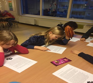 Bij juf Glenny in de flexklas hebben een aantal kinderen na aanleiding van een ralfi tekst een cacao boon onderzocht die uit Suriname afkomstig is.