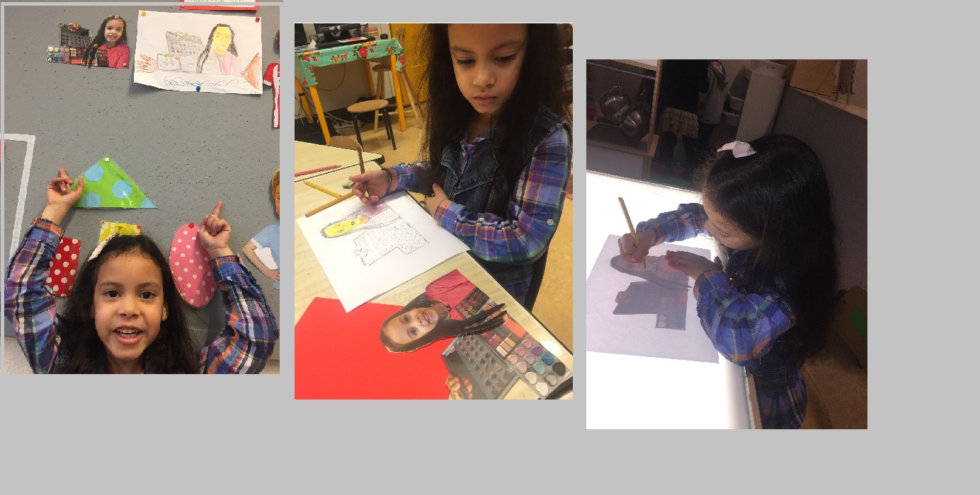 Samen met juf Lee-Ann hebben enkele kinderen van groep 2 zichzelf nagetekend in een outfit van het beroep dat hen leuk lijkt.